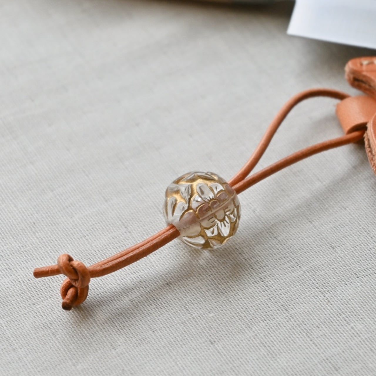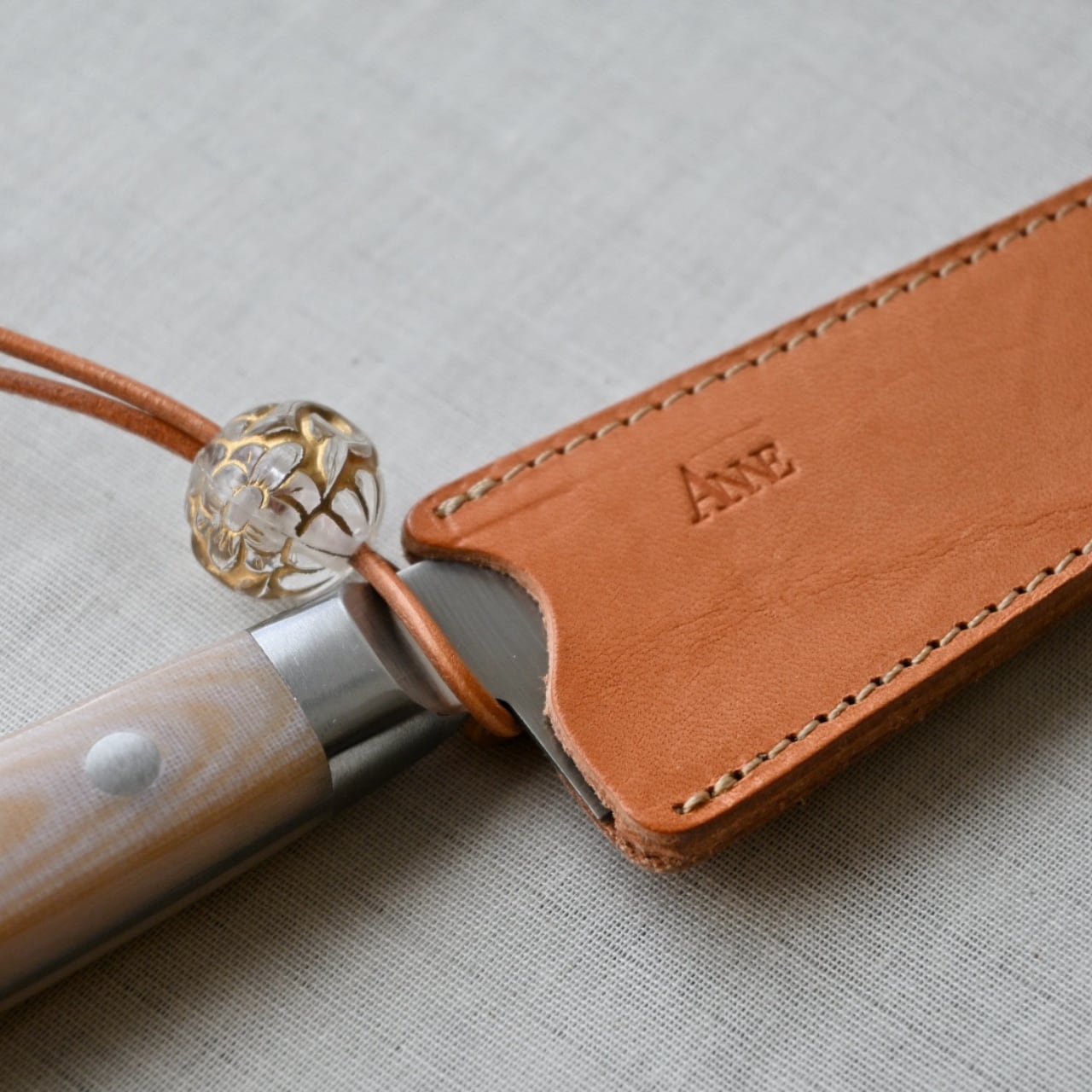 ペティナイフ&革カバーセット オレンジカラー×樹脂ビーズ(エスニック)