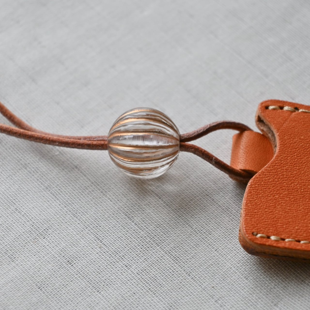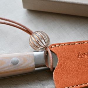 ペティナイフ&革カバーセット オレンジカラー×樹脂ビーズ(ストライプ)